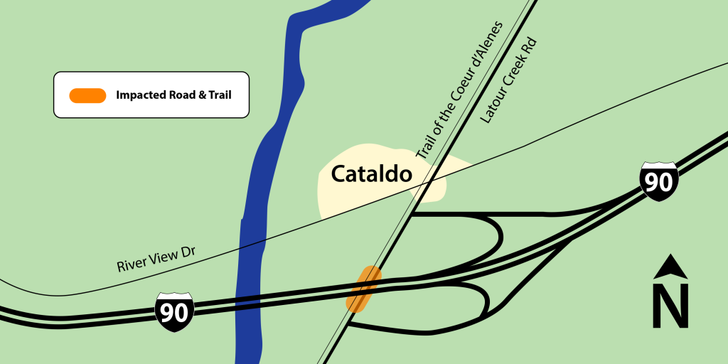 Construction on the I-90 bridge in Cataldo may cause short, intermittent delays for users of the Trail of the Coeur d’Alenes starting as early as next week. The work will take place for approximately one week and involves activity directly over the trail.