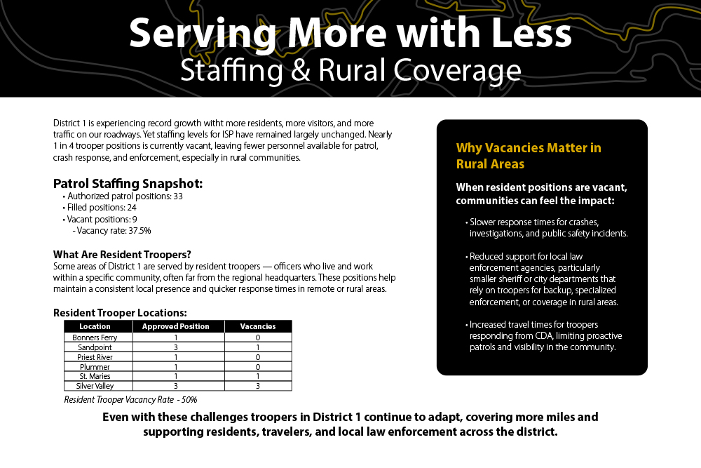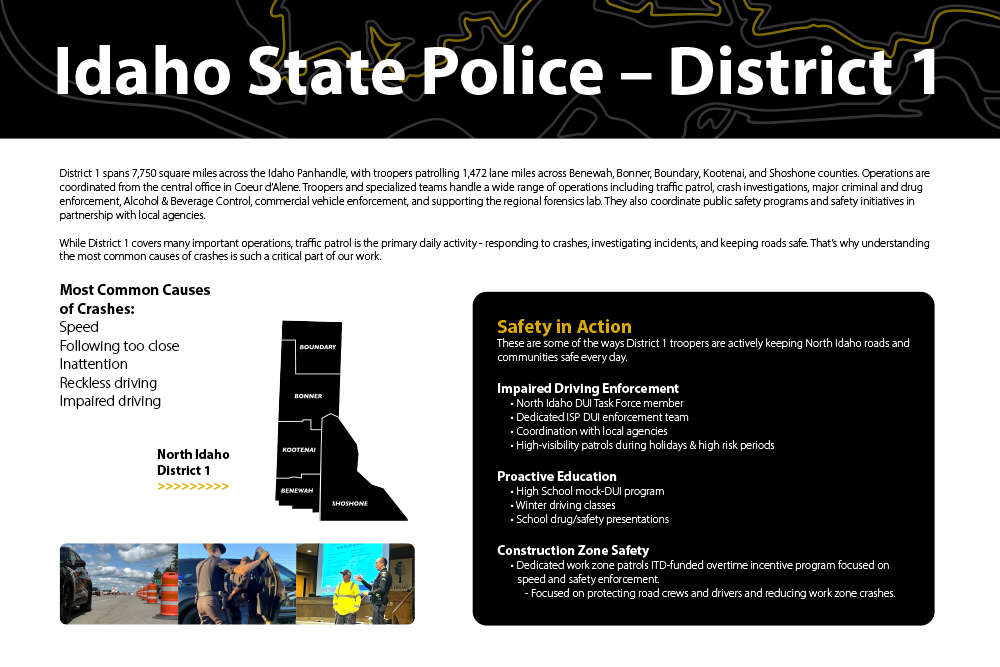 Introduces the Idaho State Police and provides an overview of their key regional responsibilities