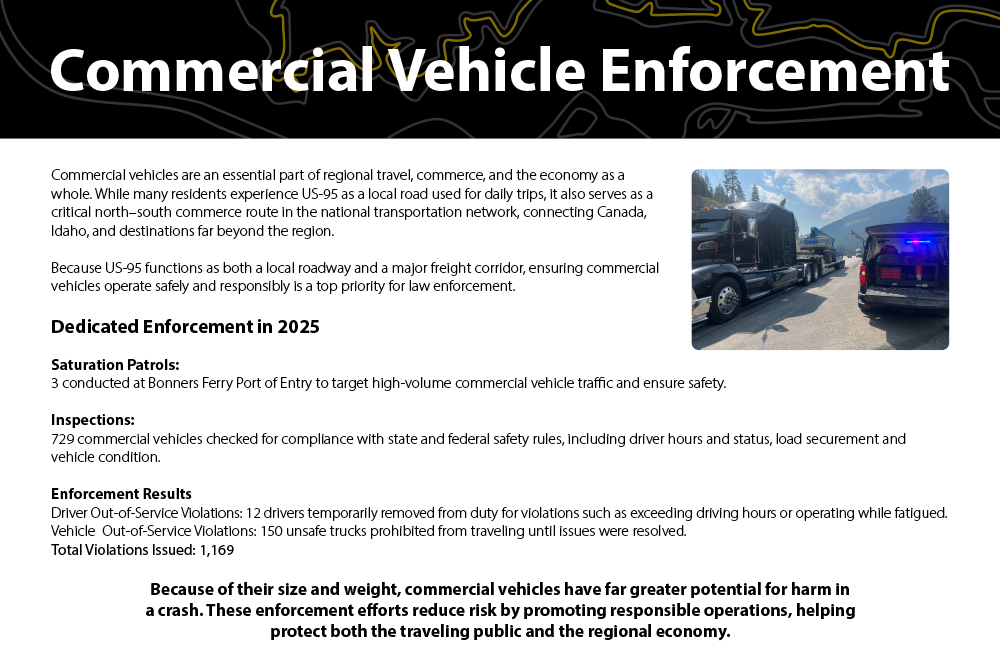 The Idaho Transportation Department, Idaho State Police, and community partners are launching a focused effort to understand safety needs along US-95 from Sandpoint to the Canadian border.