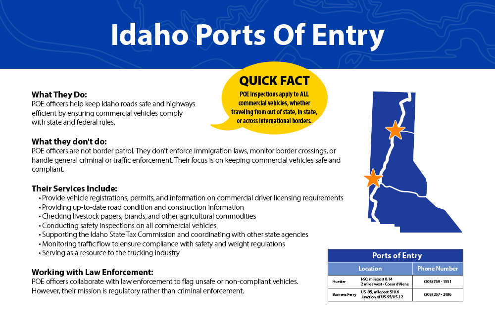 Overview of ITD's Port of Entry services that support commercial vehicle safety and compliance