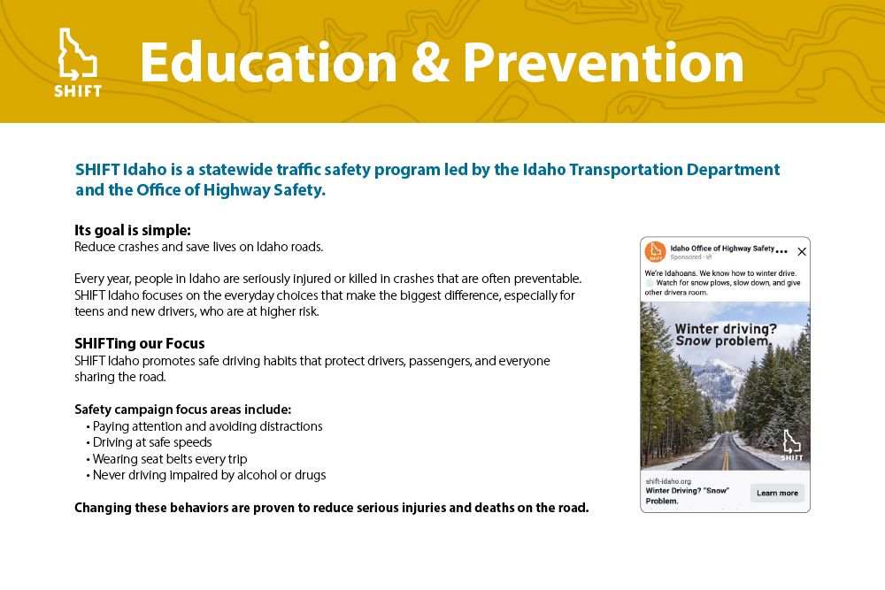 Introduces the SHIFT program and its role in education and prevention efforts for safe driving