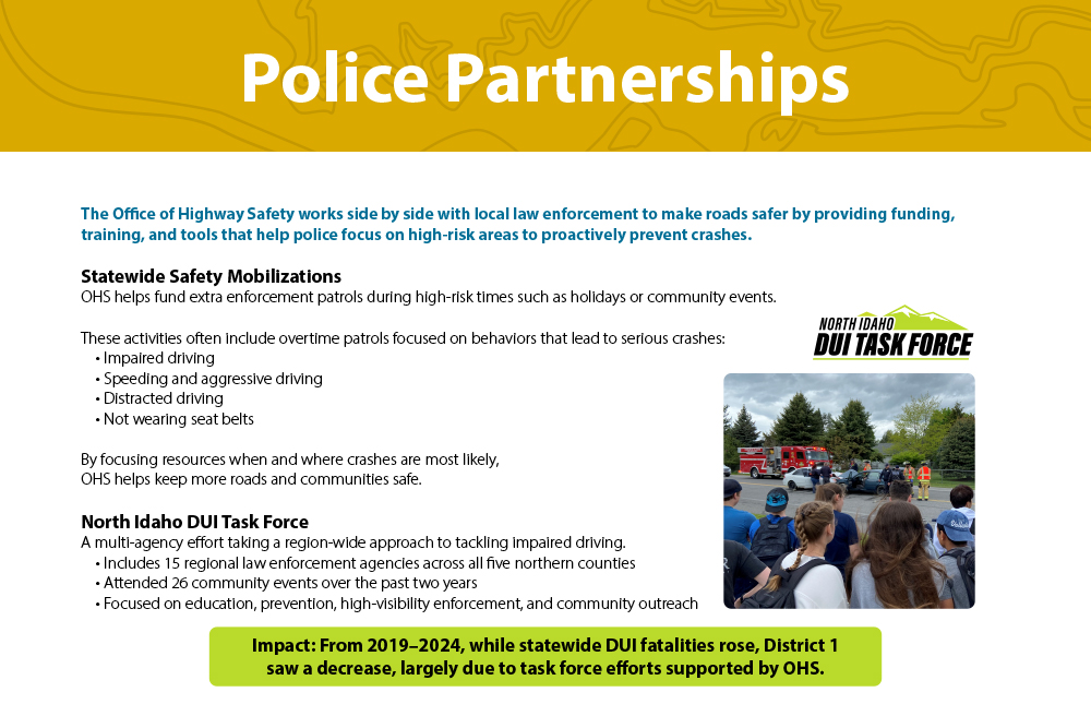 Highlights how OHS supports local police agencies to strengthen targeted enforcement initiatives and improve safety
