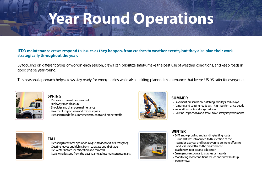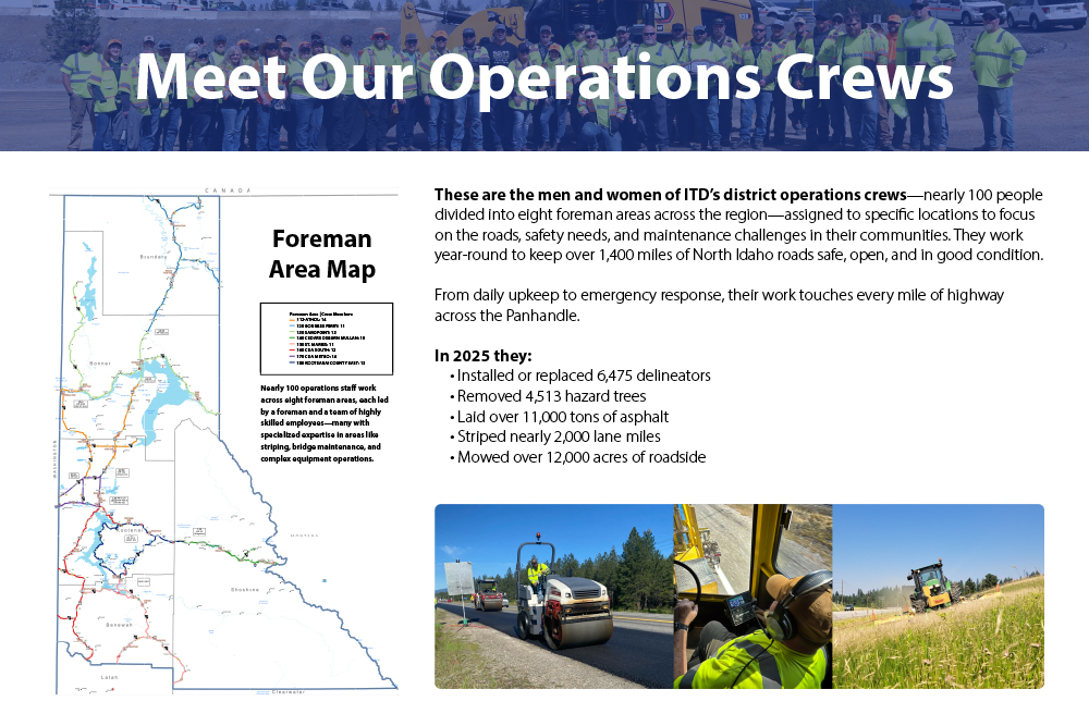 Highlights ITD's operations crews and their vital role in keeping roads safe and functional