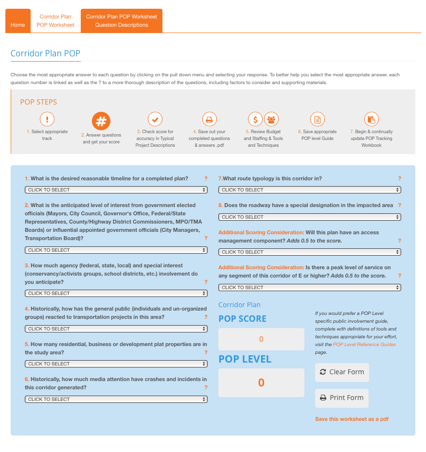 Medium and long-range highway planning efforts. This track is designed to help determine the appropriate level of public outreach on corridor planning efforts, before projects are selected and enter the NEPA phase. Corridor plans help determine where future projects are needed.