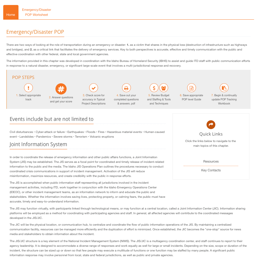 The Idaho Bureau of Homeland Security (IBHS) has specific procedures in place for emergency and disaster related incidents. This track provides specific information prepared by IBHS that provides guidance when informing and educating the public during a natural disaster, emergency, or significant large-scale event that involves multi-jurisdictional response and recovery.